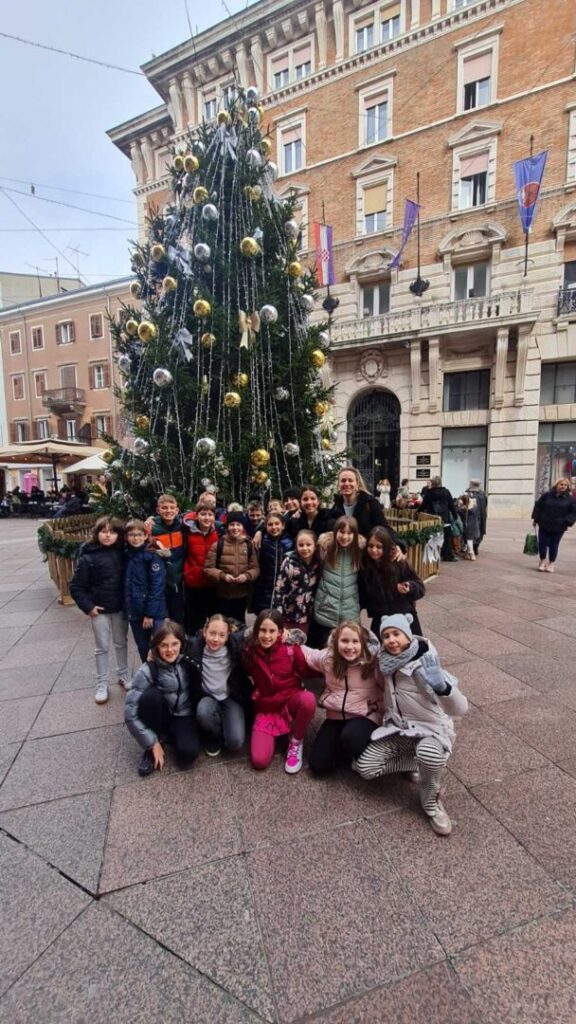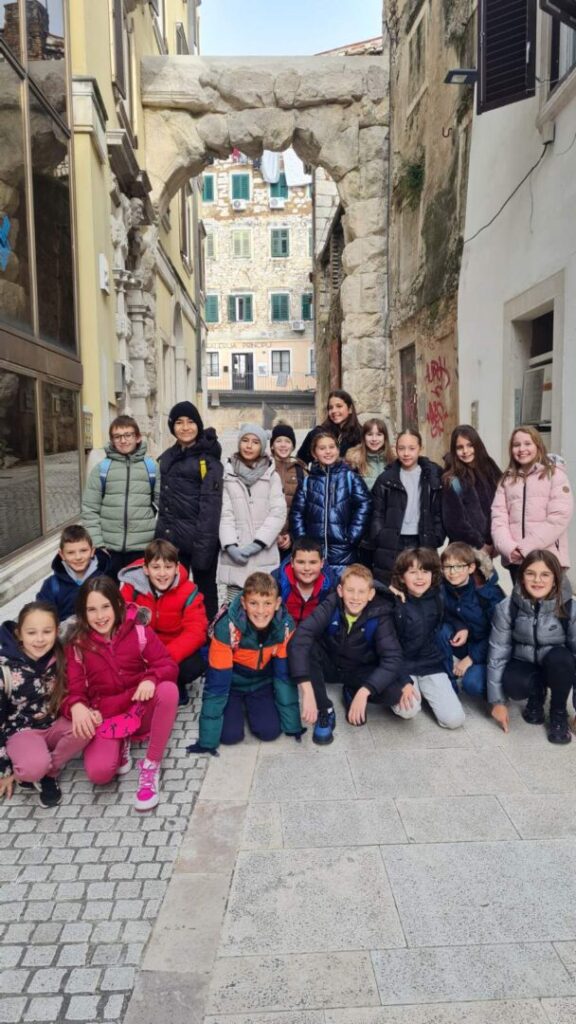 Nakon okrijepe u pizzeriji Cont šetali smo užim središtem grada. Posjetili smo Galeriju Principij, vidjeli novobnovljeni Rimski luk, te se potom uputili prema Hrvatskom narodnom kazalištu Ivana pl. Zajca.