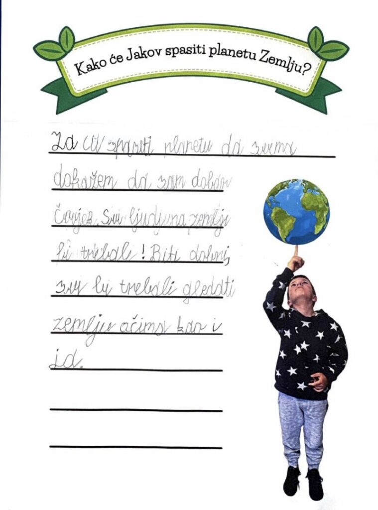 Učenici 2.b razreda prošli su se tjedan marljivo pripremali za obilježavanje Dana planeta Zemlje. Motivacija za njihov rad proizašla je iz lektirnog djela Pismo iz Zelengrada, uz koje su učenici dobili i posebno pismo koje ih je potaknulo na razmišljanje o vlastitom odnosu prema okolišu i očuvanju naše planete.
