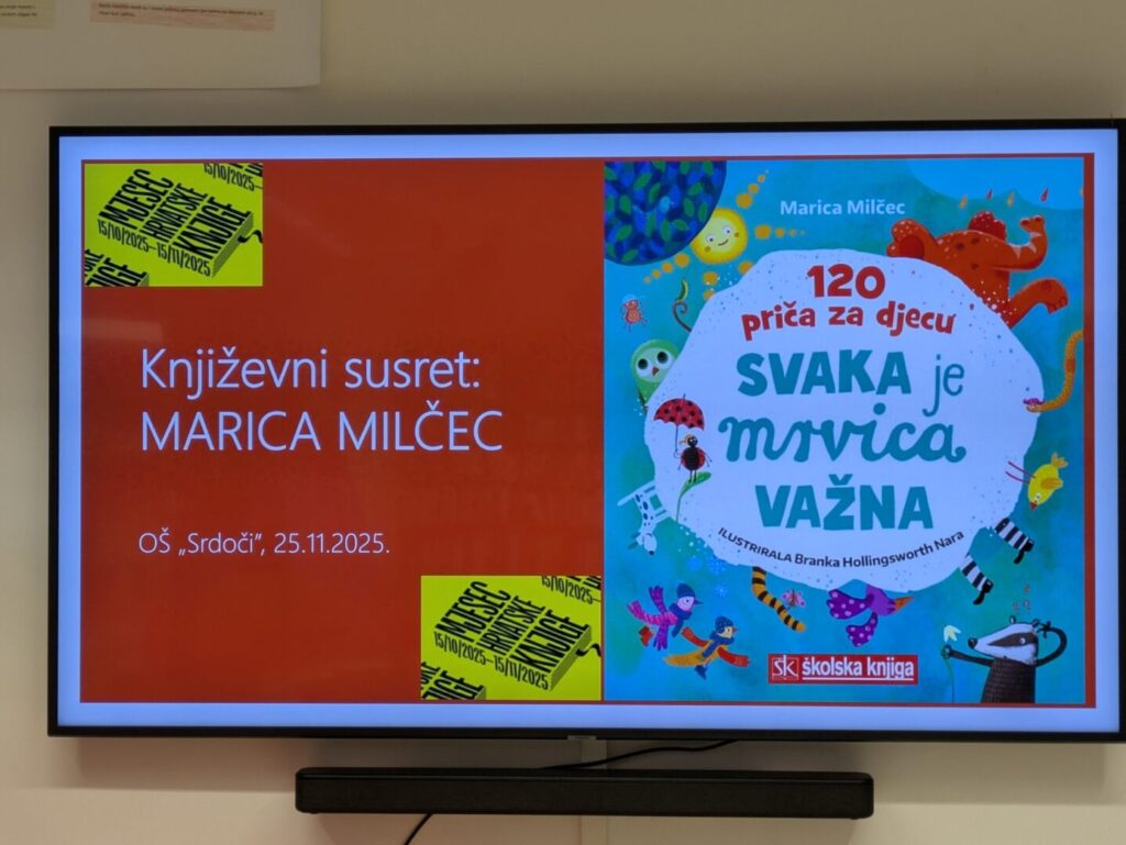Povodom službenog zaključenja ovogodišnjeg Mjeseca hrvatske knjige, 25. studenog u našoj školskoj knjižnici gostovala je Marica Milčec; autorica zanimljive i specifične zbirke priča za djecu “Svaka je mrvica važna”.