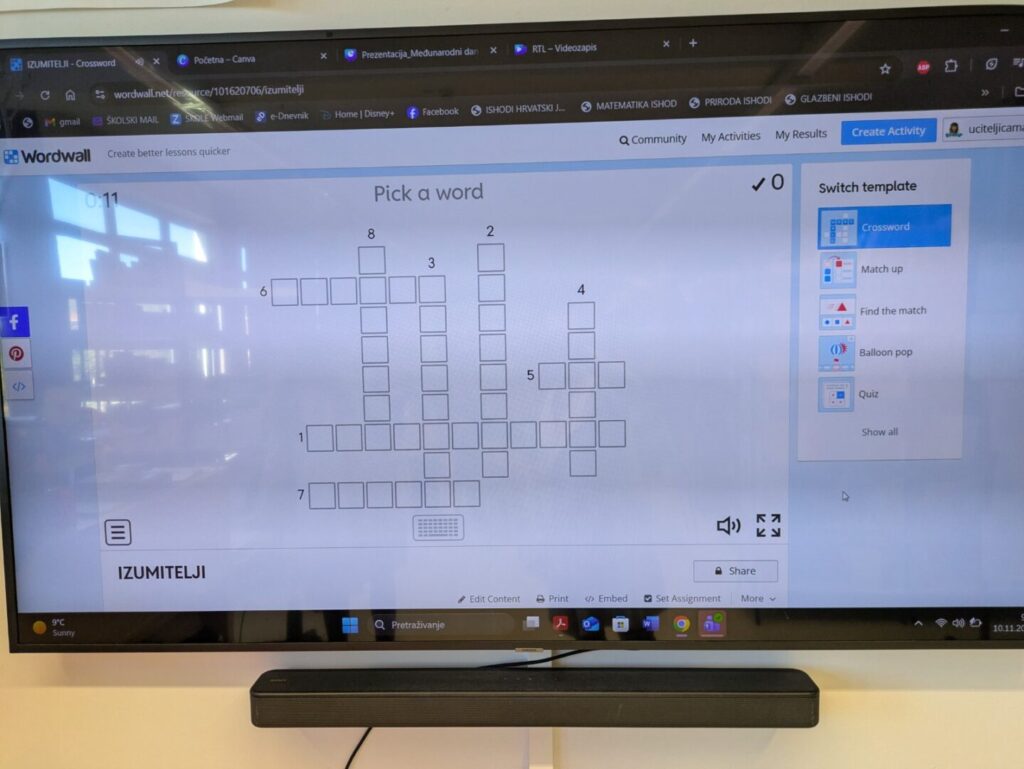 Za kraj sata cijeli je razred sudjelovao u digitalnoj križaljci koja je poslužila kao sinteza naučenog i pomoću koje smo utvrdili koliko su učenici slušali jedni druge te zapamtili o životima i izumima svih navedenih osoba.