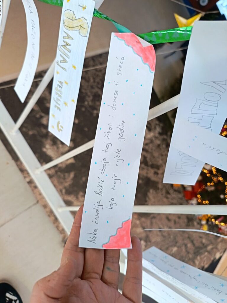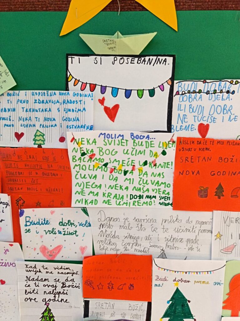 Ove godine Božić smo obilježili humanitarnom akcijom „Medvjedić dobrih želja“. U akciji su sudjelovali svi učenici i nastavnici koji su darovali svoje plišane igračke za kićenje bora u holu škole, uz obaveznu pozitivnu poruku ili lijepu želju. Nakon završetka blagdana plišance ćemo darovati onima kojima su najpotrebniji.