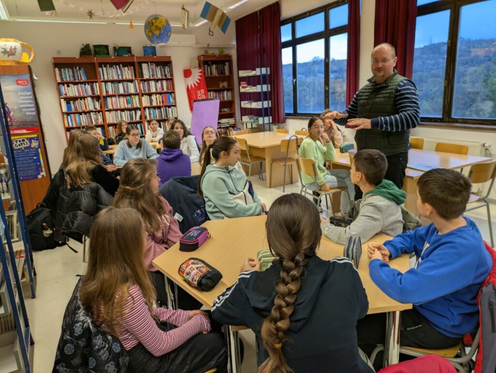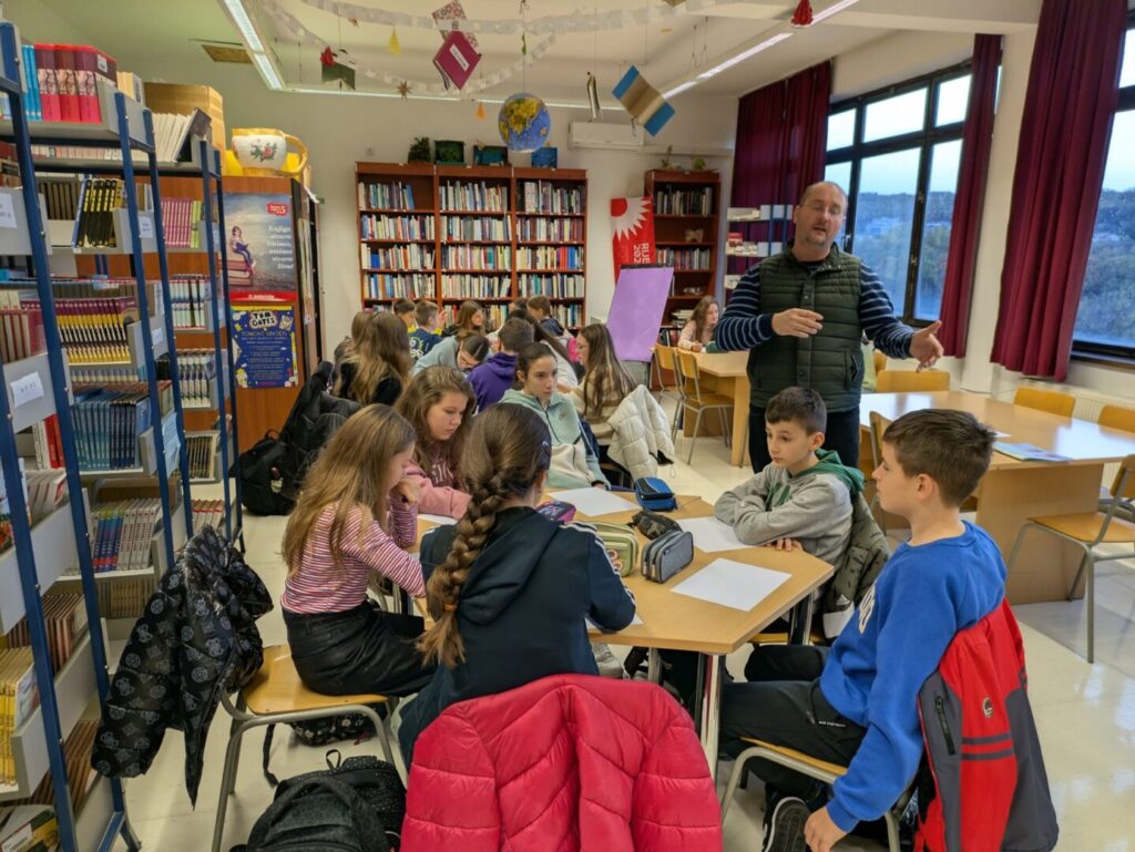 U suradnji s Društvom hrvatskih književnika, ogranak Rijeka, 26. studenog u našoj školskoj knjižnici realizirana je zanimljiva radionica kreativnog pisanja za učenike viših razreda, pod vodstvom višestrukog delničkog umjetnika i književnika Davora Grgurića.