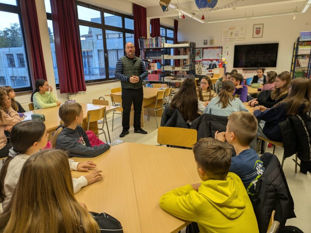 Na radionici su nazočili odabrani učenici iz 5.a, 5.b te 6.a i 6.b razreda, a naš gost im je tijekom dva školska sata nastojao što više približiti pisanje kao umjetničku formu koju valja promatrati kao zabavu i izraz kreativnosti, a ne kao nešto teško i problematično. U uvodnom razgovoru s njima otkrio je da tom prigodom surađuje sa zainteresiranim pojedincima kojima knjiga i pisanje i inače predstavljaju svojevrsni kreativan izazov te da se većina okušala u nizu literarnih formi i izvan školskih zadataka.