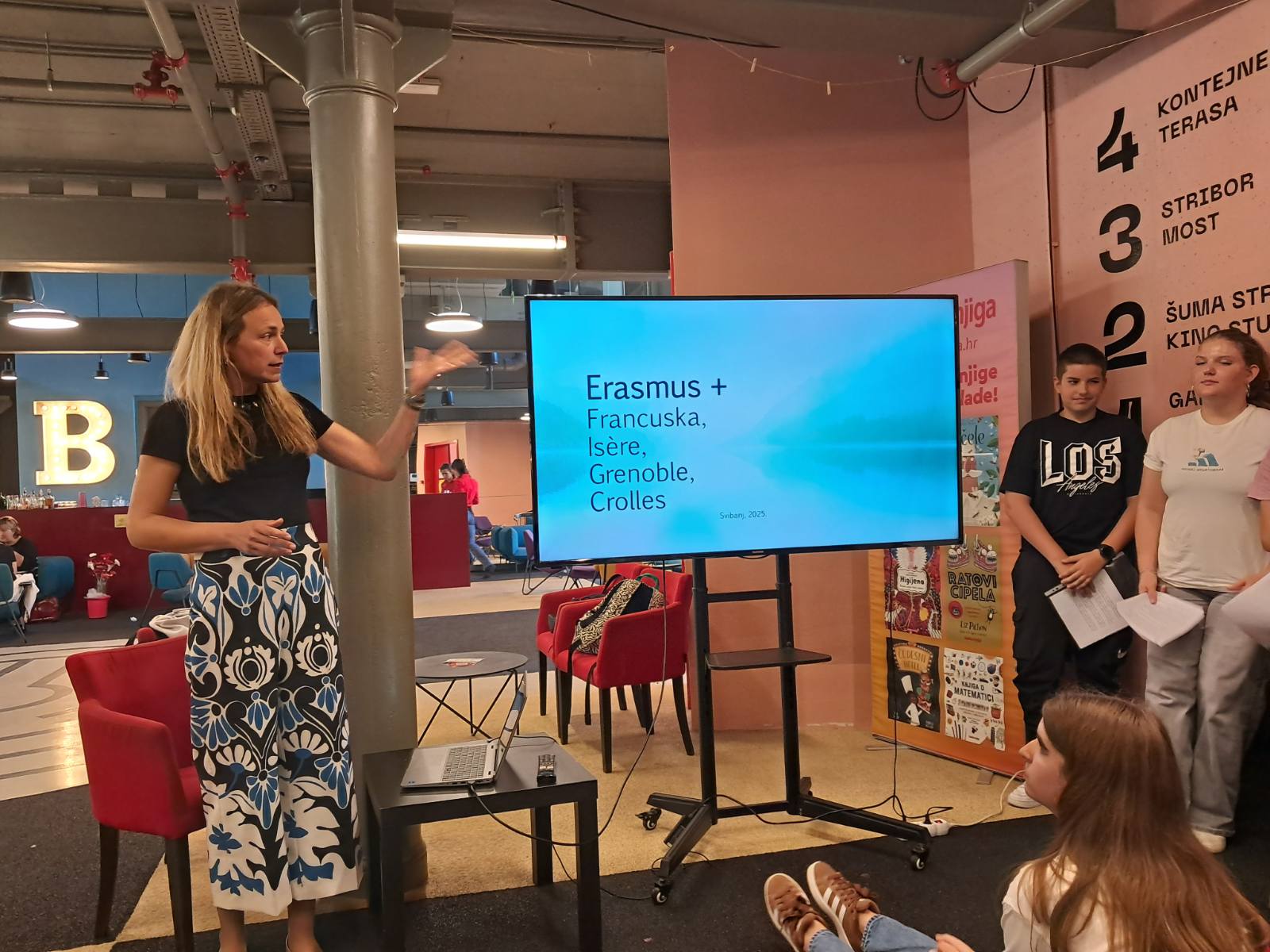 Učenici osnovnih škola Podmurvice, Kozala, Srdoči i Bakar ispričali su nam kako je njima bilo sudjelovati u projektima i mobilnostima, a nakon toga su zaigrati zabavni pub kviz kojeg je vodila Erasmus+ ambasadorica Samanta Matejčić Čotar.