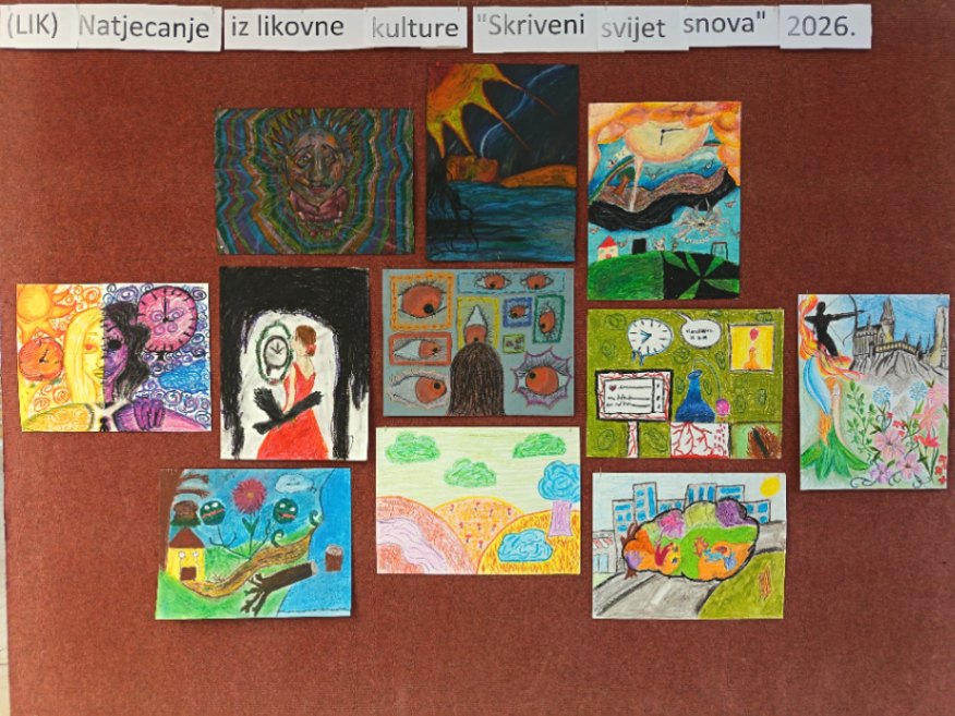Rezultati školskog natjecanja iz Likovnog LIK- natjecanje i izložba 2026. Tema: Skriveni svijet snova (tekstura, tonovi i toplo- hladni kontrast)