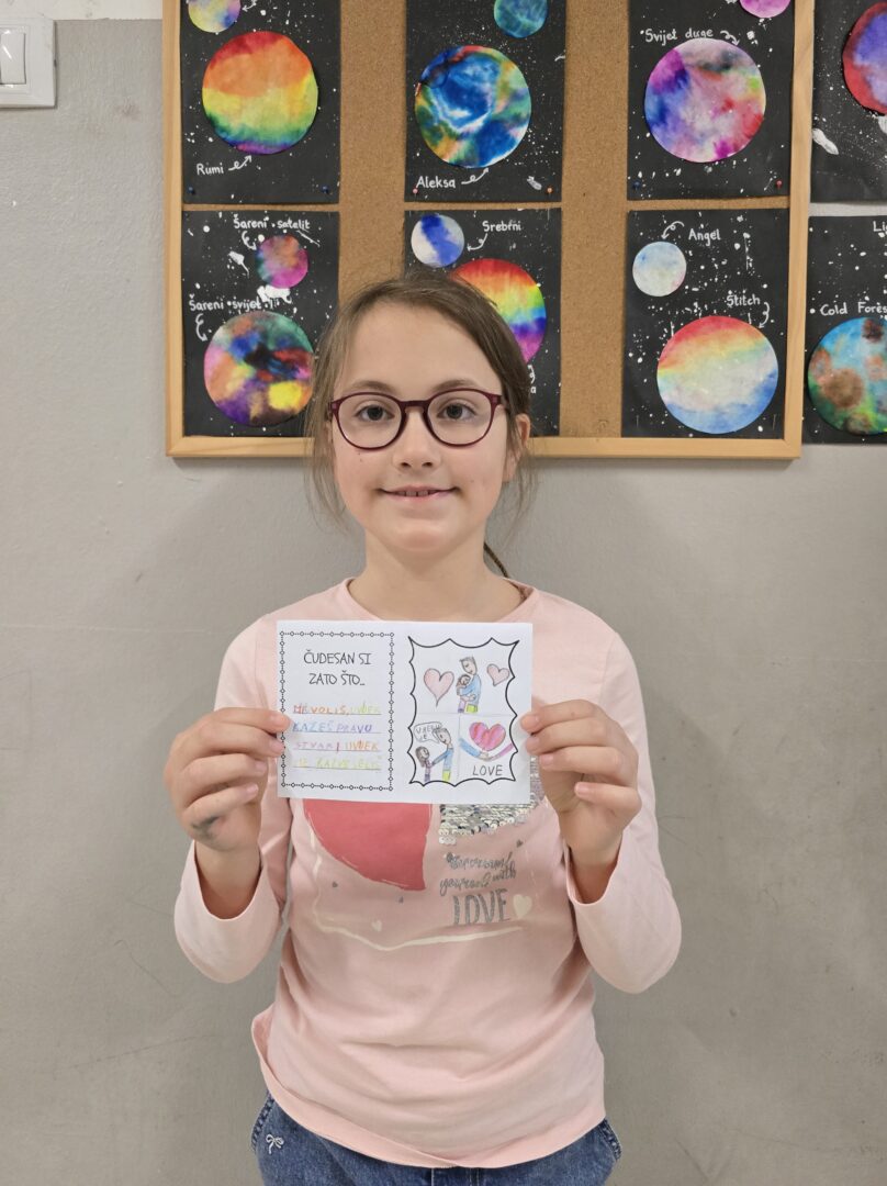 Učenici 3. b i 3. c razreda uz pomoć svoje učiteljice Ivane izradili su posebne čestitke za svoje tate. Zadatak je bio osmisliti originalne i osobne poruke kojima će izraziti ljubav i zahvalnost, a pritom su koristili vodene boje i POSCA flomastere. Učenici su pokazali veliku maštovitost, a posebno su nas razveselile njihove poruke u kojima su tatama pisali koliko ih vole, uspoređujući tu ljubav s onim što im je najdraže: Volim te više od nogometa, Volim te više od crtanja, Volim te više od plesa, pa čak i Volim te više od HNK Rijeke. Sigurni smo da su ove čestitke izmamile osmijehe na lica njihovih tata i učinile ovaj Dan očeva još posebnijim.