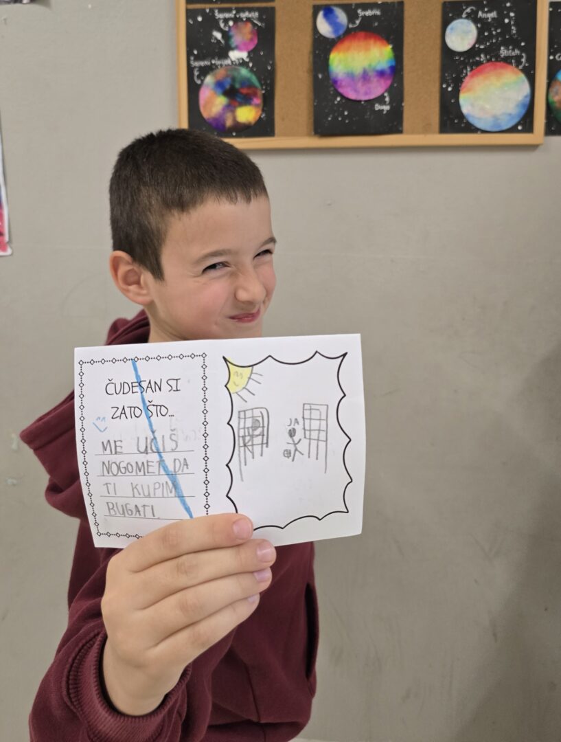 Dan očeva u produženom boravku obilježili smo uz puno smijeha, kreativnosti i toplih riječi. Naši produženci kroz razne su zanimljive aktivnosti izražavali ljubav i zahvalnost prema svojim očevima.