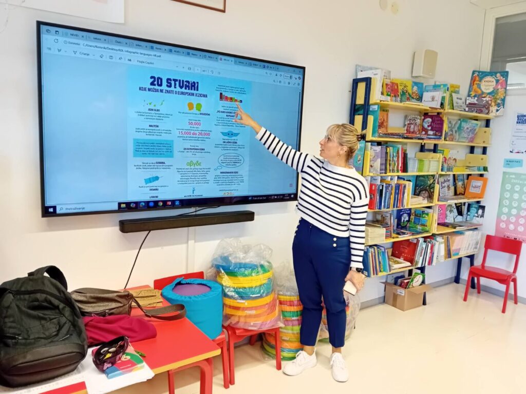 Dvadesetak polaznika izborne nastave Talijanskog jezika 6.c i 6. d razreda sa svojom učiteljicom Koraljkom Šarkanji 1. listopada u školskoj je knjižnici, uz pomoć knjižničarke, saznalo nešto više o samom Europskom danu jezika, otkad se i s kojim ciljem obilježava i sl., a potom su ispunili kratku anketu s raznim općekulturnim činjenicama o jezicima po čijoj će analizi biti utvrđeno koliko su današnji učenici zaista upućeni u traženo.
