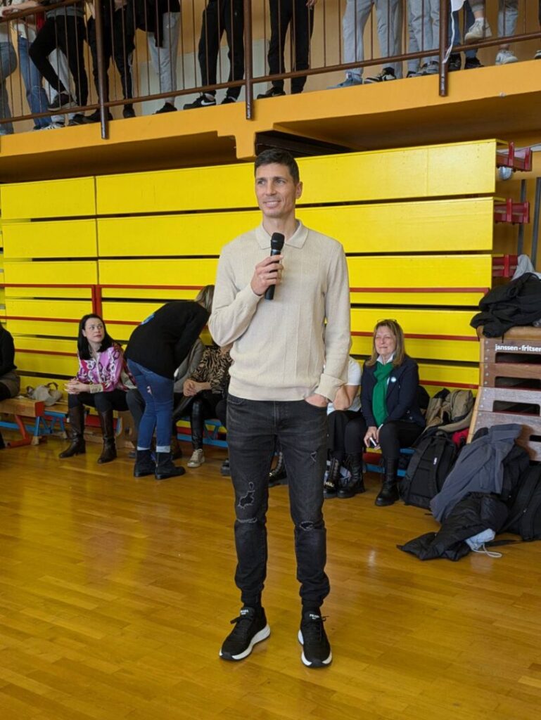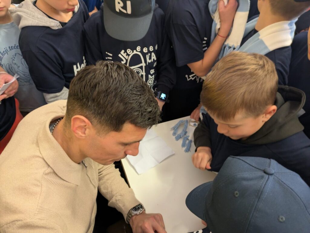 Ipak, ono što je uslijedilo nitko nije očekivao: u četvrtak, 29. siječnja, našu su školu posjetili ne samo predstavnici “sedme sile”, Kanal Ri i Novi list, već i najtrofejniji i najbolje plaćen nogometaš HNK Rijeka, Damir Kreilach osobno!