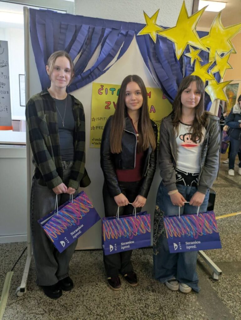 Predstavnice naše škole: Amber Žlibanović, Matea Matić i Nina Bravić, bile su jedna između 18 nazočnih ekipa u kategoriji kviza znanja, a u kategoriji kreativnog uratka natjecanju su pristupili predstavnici samo triju škola.