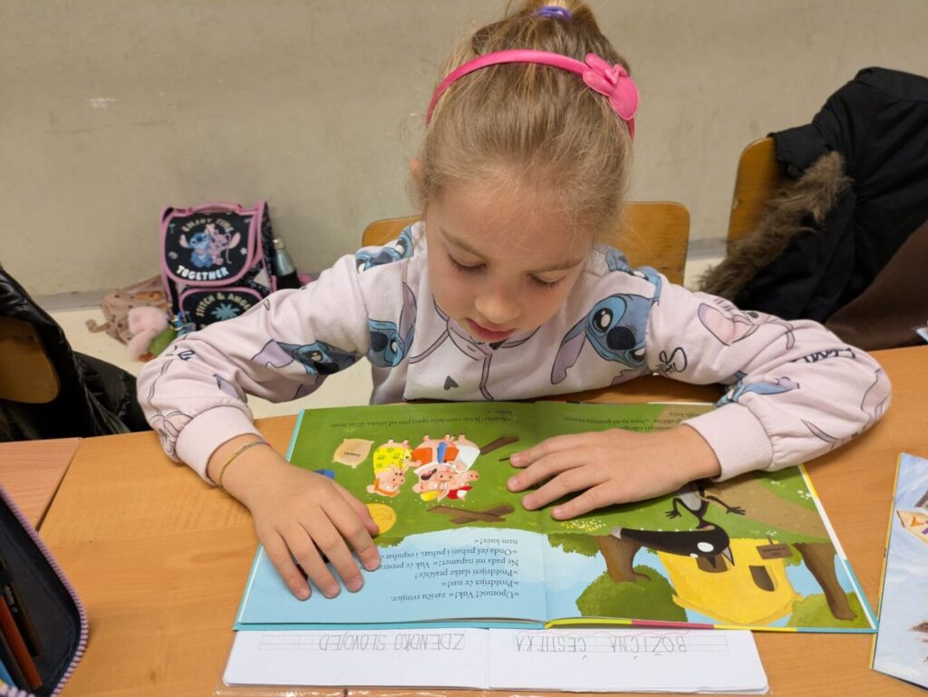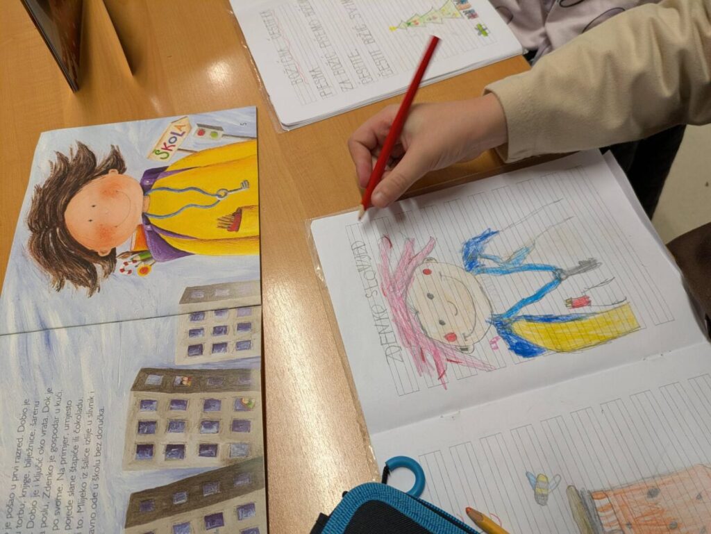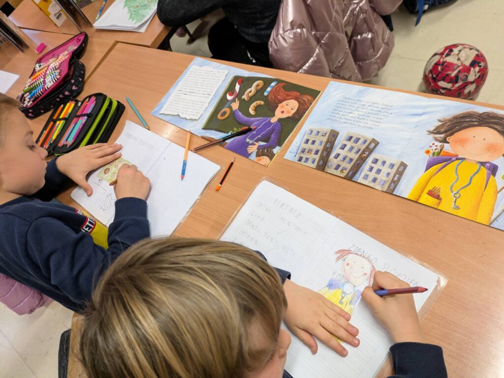 Ovogodišnji Svjetski dan čitanja naglas obilježen i u 1.a. razredu uz čitanje slikovnice “Zdenko Slovojed” Ž. Horvat Vukelje, koju je prvašićima pročitala knjižničarka, a potom se i nekoliko najhrabrijih prvaša javilo za čitanje slikovnice “s malim slovima”. Ovom je prigodom to bila “Vuk koji je zalutao u zemlju bajki” koju je, nakon nekoliko dragovoljaca, ipak dovršila knjižničarka, a svi su zajedno dobili kreativni zadatak: nacrtati Zdenka Slovojeda – pri čemu su jako uživali!