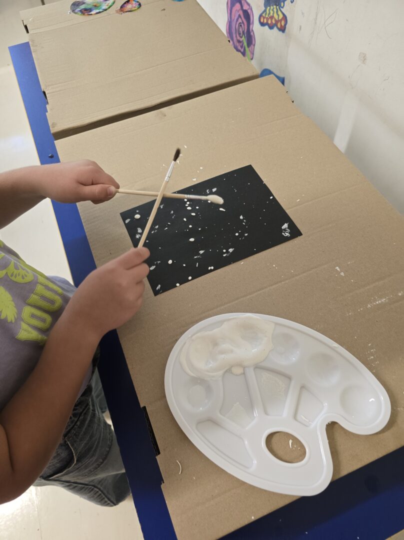 Na kreativnoj radionici na crnom papiru drvenim su bojicama crtali zvijezde i planete, a zatim su obojili raketu koju su, uz pomoć učiteljice, zalijepili na konac pričvršćen za papir. Tako su nastale vesele rakete koje lete njihovim svemirima.